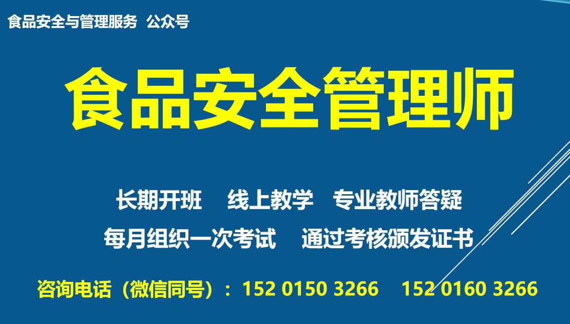 為了幫助食品生產(chǎn)經(jīng)營(yíng)企業(yè)提升食品安全管理水平,增強(qiáng)食品安全風(fēng)險(xiǎn)防控能力,規(guī)避法律風(fēng)險(xiǎn),特舉辦《食品安全管理師》專題培訓(xùn),通過(guò)培訓(xùn)考核的學(xué)員將獲得《食品安全管理師》證書。現(xiàn)將有關(guān)事宜通知如下: